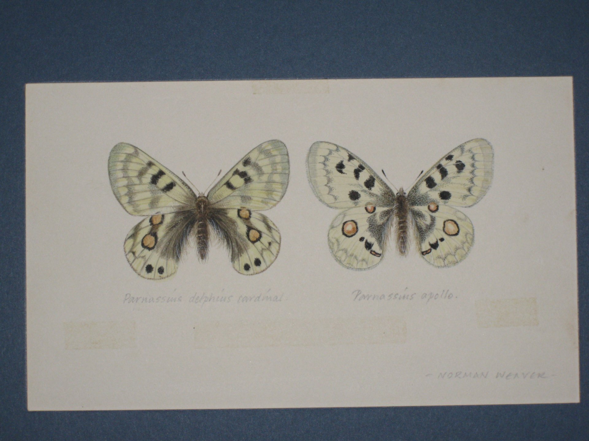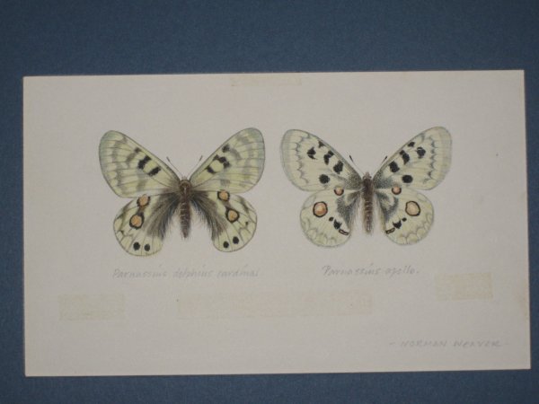 The above illustration, once again the original artwork for the illustration on Page 17, depicts two forms of the Apollo butterfly.