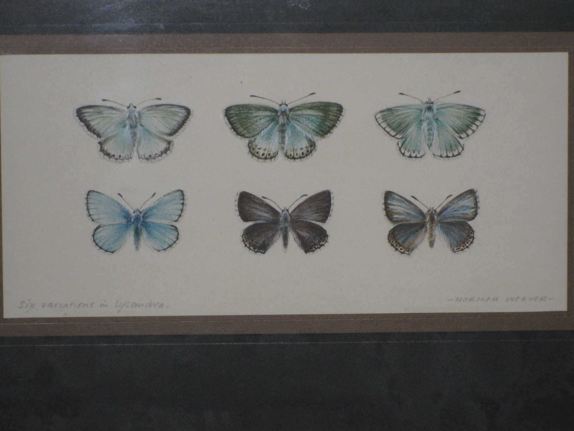 The above painting (from Page 17) shows the wide range of colour variations found in the European Chalkhill Blue butterfly.