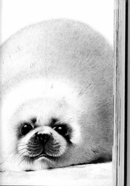 I remember watching Dad drawing this lovely seal pup.  He wouldn't tell me what it was, and asked me to guess.  He started with just the eyes, and I thought it might be a dog, but this beautiful creature just began to grow out of the paper as he added more and more detail using just pen and ink.  I wish I knew where the original has gone!