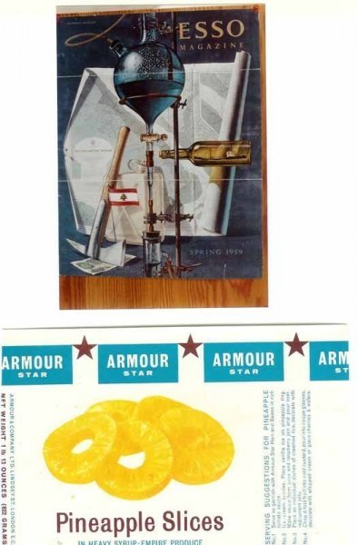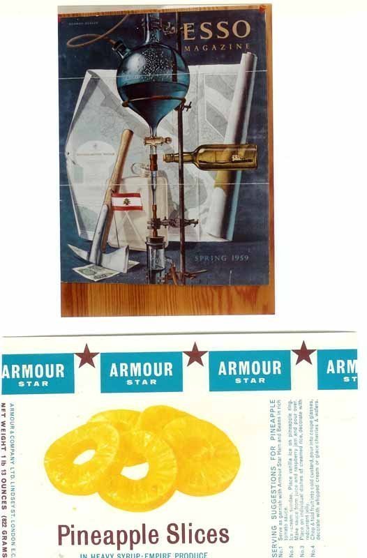 I'm not sure how the pineapple slices seem to be permanently attached to the front page of the Esso magazine shown above, but I was recently lucky enough to discover the original Esso artwork being sold at auction. Although the purchase price meant that we couldn't eat for a week, I was delighted to be able to bring home another irreplaceable original, which has now been framed and is hanging proudly on my wall: