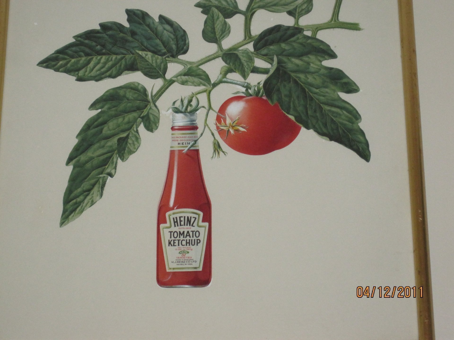 Today I was rehanging an original drawing of a HEINZ ketchup bottle hanging from a  magnificent botanical drawing of a tomato  plant.  The drawing appeared in  a magazine ad in 1969.  I was seconded to Heinz UK from the U.S. in that year to be the product manager for HEINZ ketchup.  The framed drawing was presented to me by Young & Rubicam   our ad agency at that time.  I retired from HJ HEINZ CO in Pittsburgh in 1997