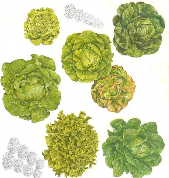 Still in the greengrocers, but clearly not commissioned by Cape Fruit this time, this painting illustrated different types of English lettuces.