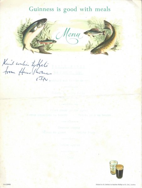 My thanks to Young's for finding this label for me. When Dad was first asked to produce advertising artwork, he would sketch out his ideas and submit this as a "rough". Usually some changes and suggestions would be made, and he would get his initial work back with various pencil notes on it for modification. He would then work on the finished painting, which would be submitted to the advertisers for approval, after which, there may be several minor modifications before the painting went to print. In the case of this label, he sketched a basic idea for the ram's head, posted it off.... and the next thing he knew, it appeared on the bottles! He was astounded that this very rough pen and ink drawing could ever have been considered fit for the purpose, and a little miffed that he knew he could have produced something much better. Still, it was used for several years, so someone must have liked it!