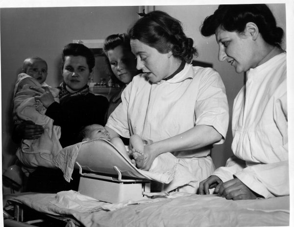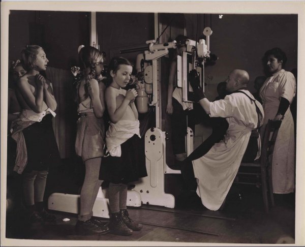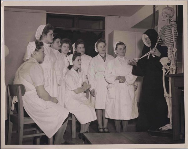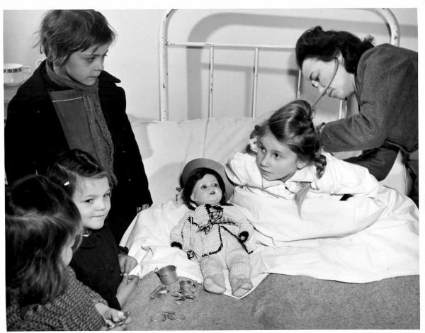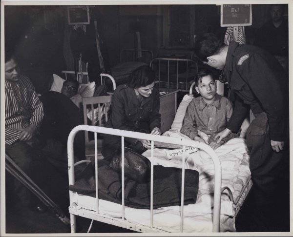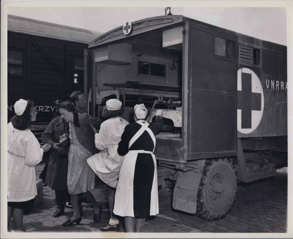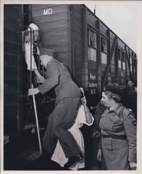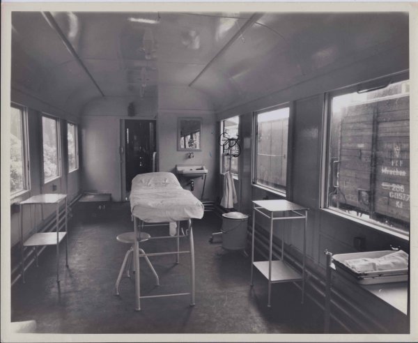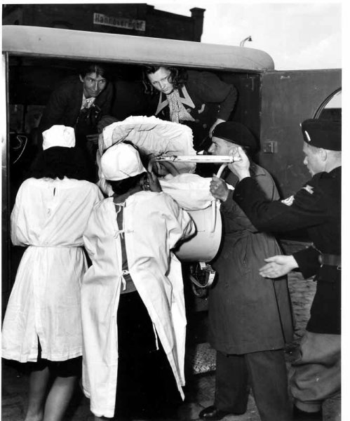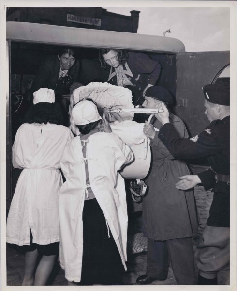 The next series of photographs come from an envelope simply marked "Medical". Some were taken at St Marien Hospital, in Bonn, where female medical students study medicine and dentistry, and some from inside the clinic at Bruweiler. There are also a series of photos which show casualties being transported on UNRRA vehicles to treatment centres, some of which were converted railway carriages.