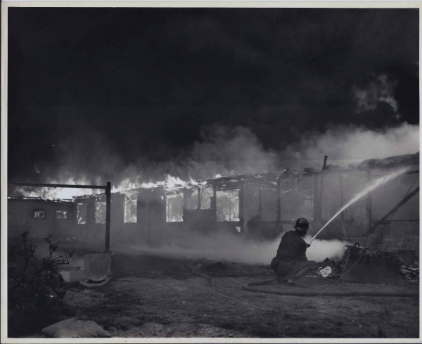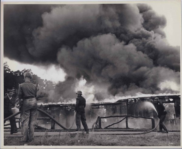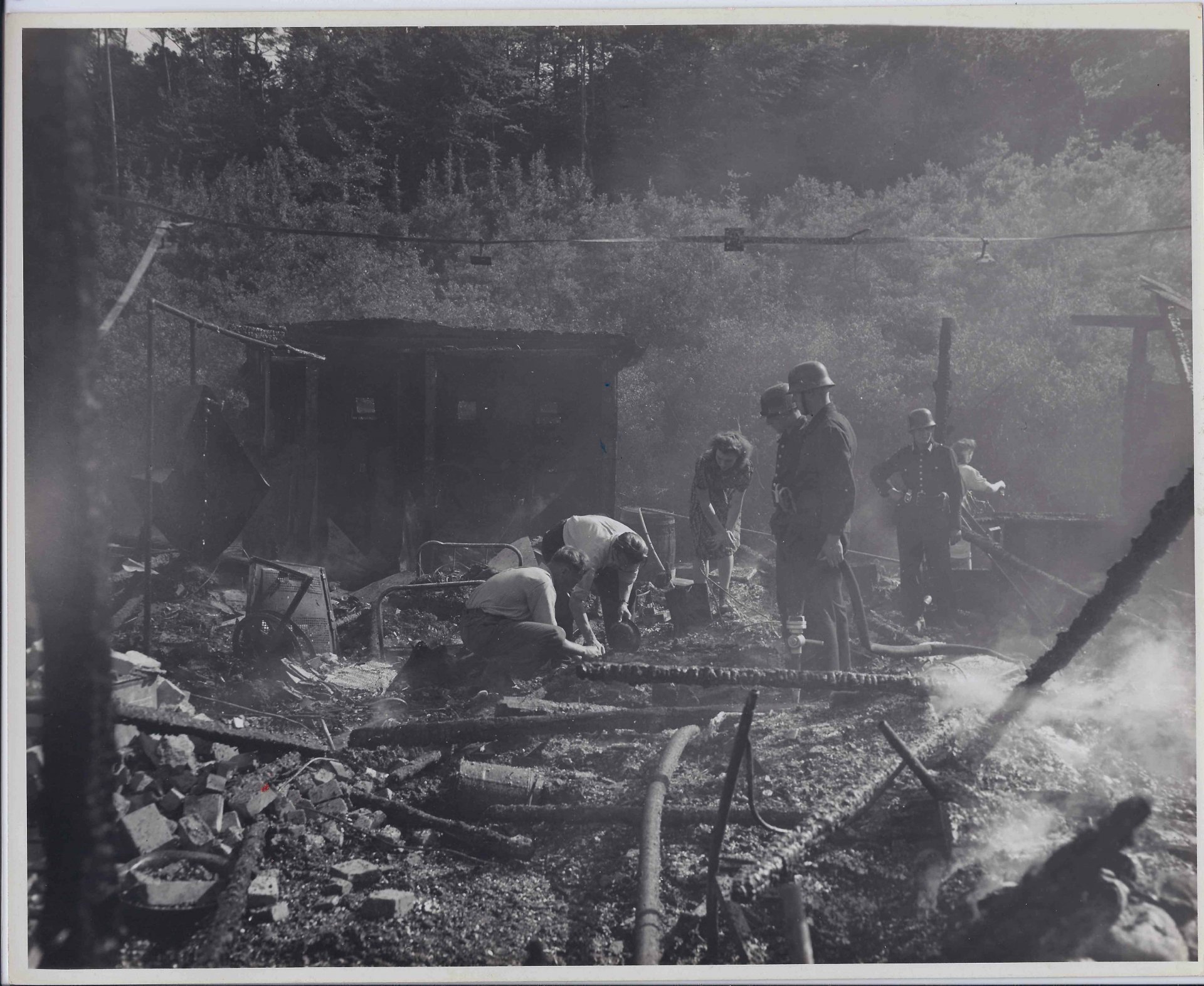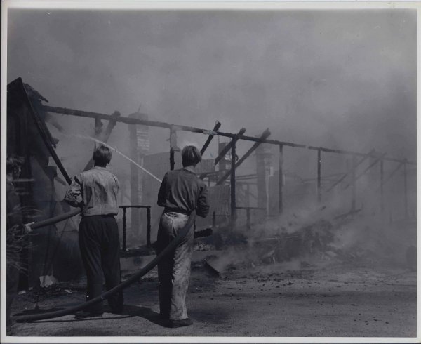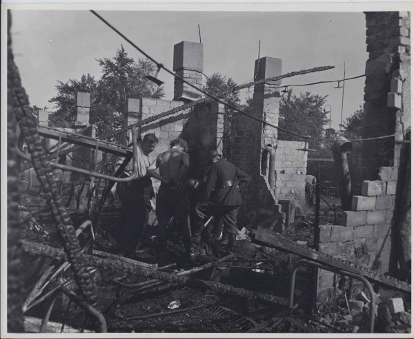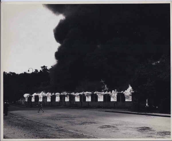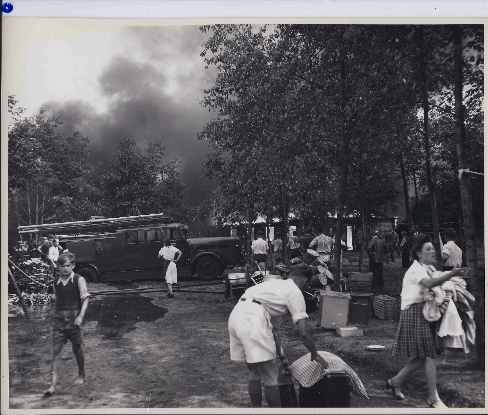 The next set of photos were taken when a fire destroyed the UNRRA administration camp at Lubeck, Germany, in 1946. Despite the best efforts of firemen, the camp was almost entirely destroyed, and the refugees found themselves displaced once more, having quickly salvaged whatever belongings they could carry.