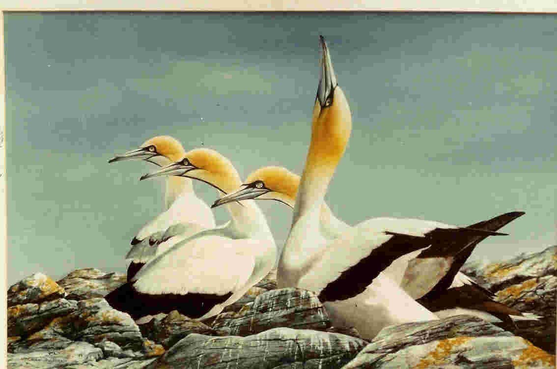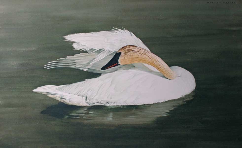 Dad would also occasionally disappear into his studio and come down a few hours later with a painting he'd done just for fun. I still have a number of these originals, and a few are shown below. I was always fascinated by the fact that Dad never used any white paint in his work. Any white areas were simply sections where the white card showed through, and this is particularly remarkable with the first painting shown below - A white swan with no white paint? Yes, it's true!
