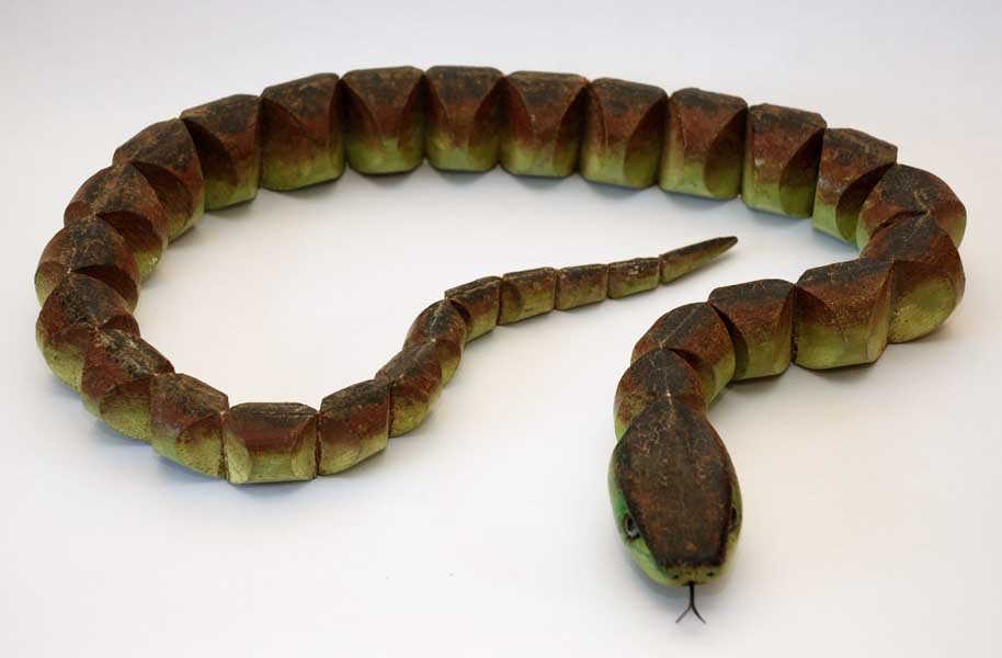 I have since seen similar items for sale in shops, but this was made years before they were so readily available, and I have never seen one with such a realistic movement. It is also larger than others I have seen, at around two feet in length and its weight makes his movement eerily convincing. Despite the fact that it is obviously not real, several people with an aversion to snakes have not been able to go near it! I think he is rather a noble beast.